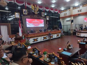 Metromubaraq.com |METRO — Dewan Perwakilan Rakyat Daerah (DPRD) Kota Metro menggelar Rapat Paripurna Penyampaian Laporan Keterangan Pertanggungjawaban (LKPJ) Wali Kota Metro Tahun Anggaran 2024 di ruang sidang utama Gedung DPRD, Senin (14/4/2025).